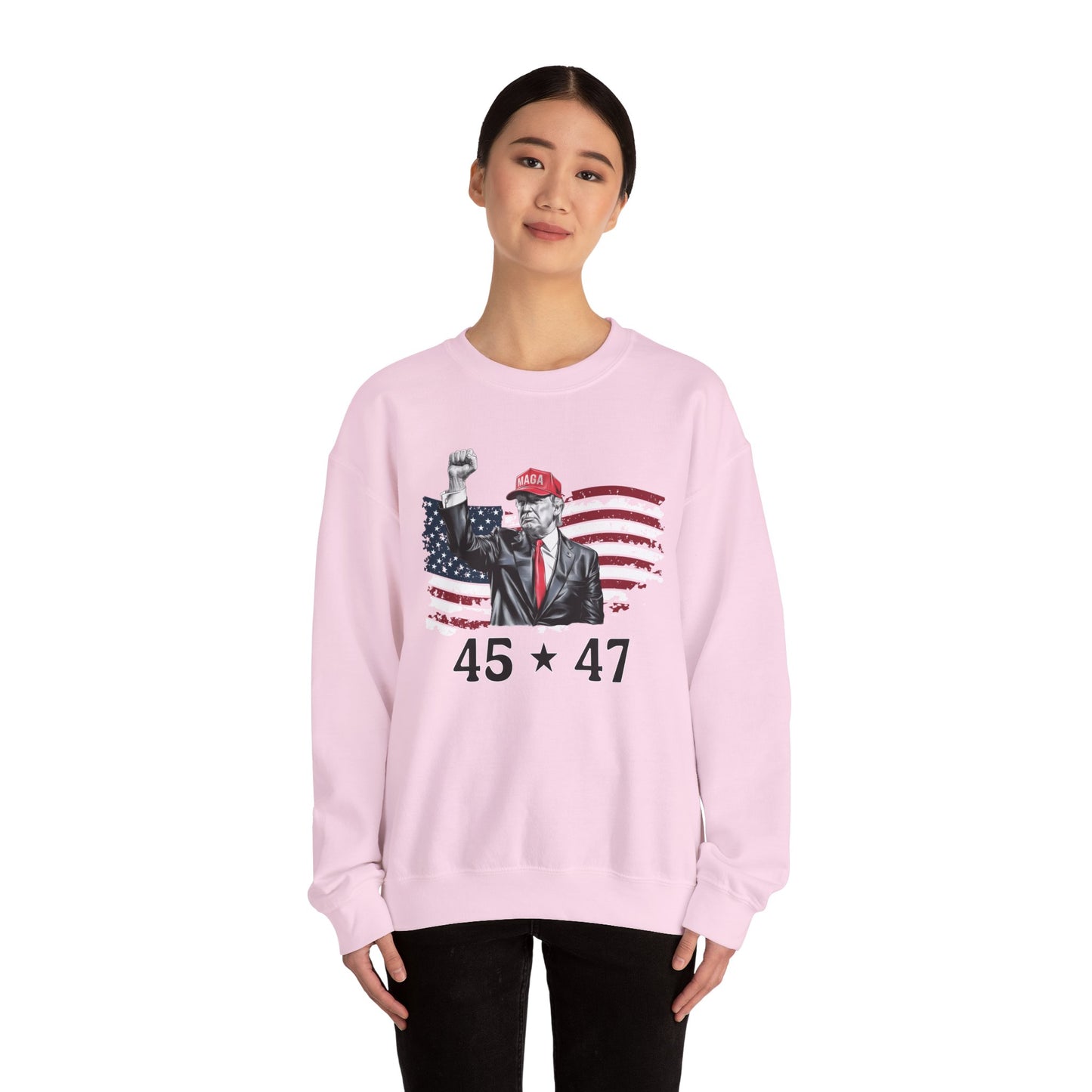 Stay warm, stylish, and proud with the "45-47 Trump" Sweatshirt! Order yours today and wear your support with confidence! 👕🇺🇸