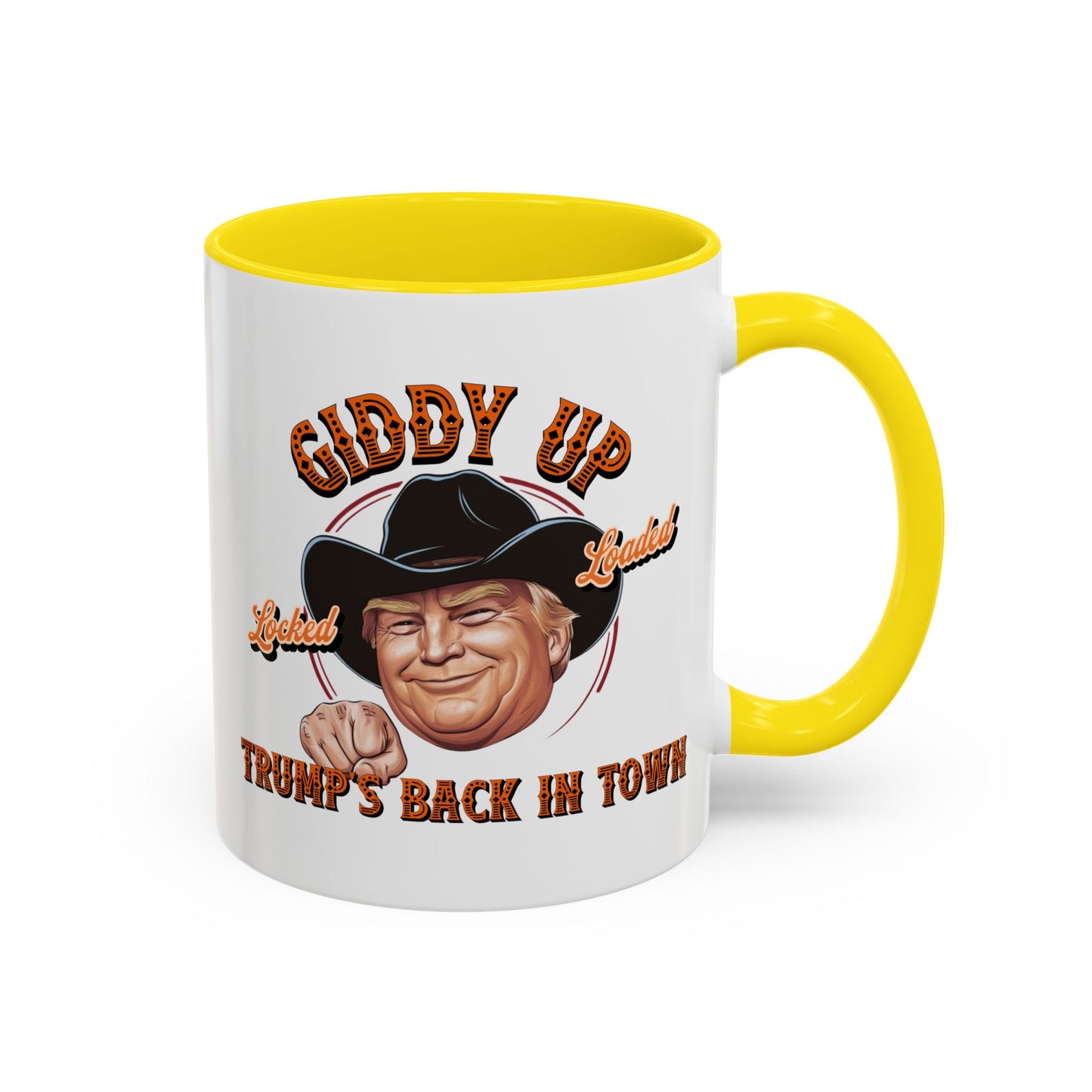 Add a splash of humor to your day with the Giddy Up! Trump’s Back in Town Mug, designed for those who love to enjoy their coffee with a side of laughter. Featuring a lively and colorful design, this mug is the perfect gift for political humor enthusiasts and anyone who appreciates a playful twist to their daily routine. Great for birthdays, holidays, or simply making mornings brighter.